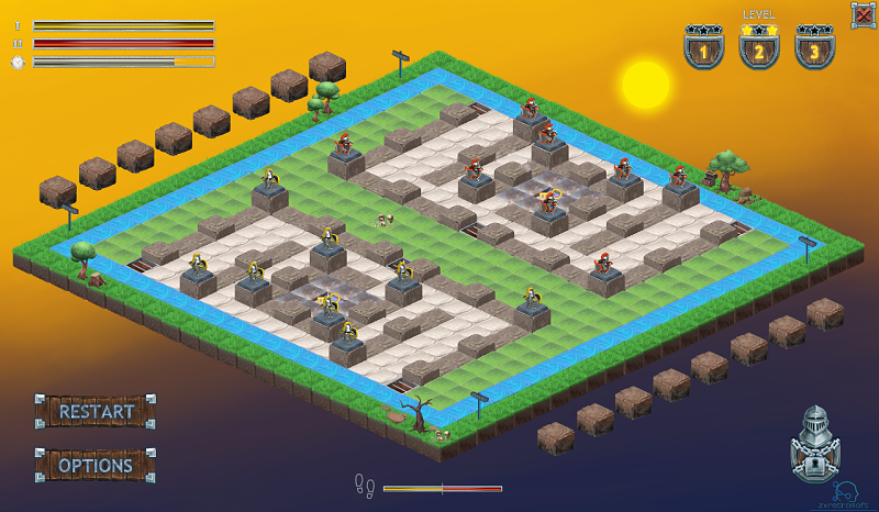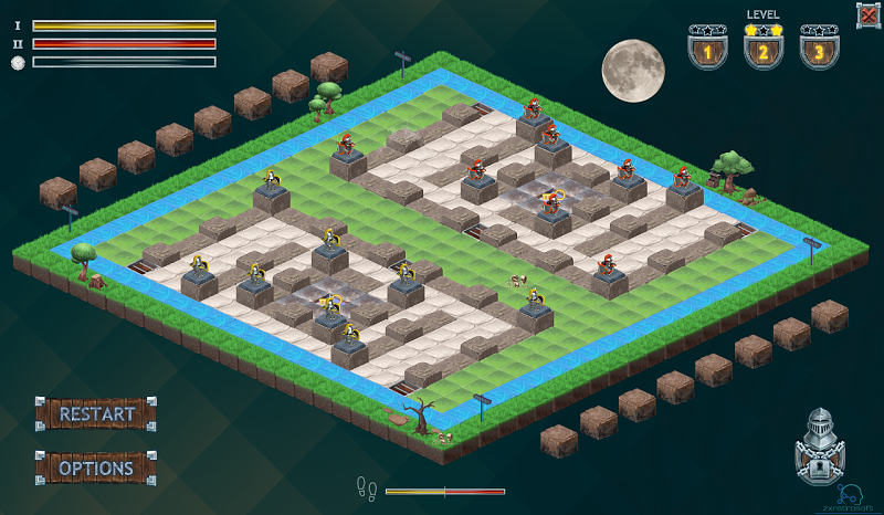 The board game Conquest of the Castle is a popular old club game. You can choose 3 levels of difficulty. Among other things, it is possible to turn off the weather in the menu or set a stronger element of chance for the computer game. The step count panel down the middle is for informational purposes only and has no effect on the game or winning.