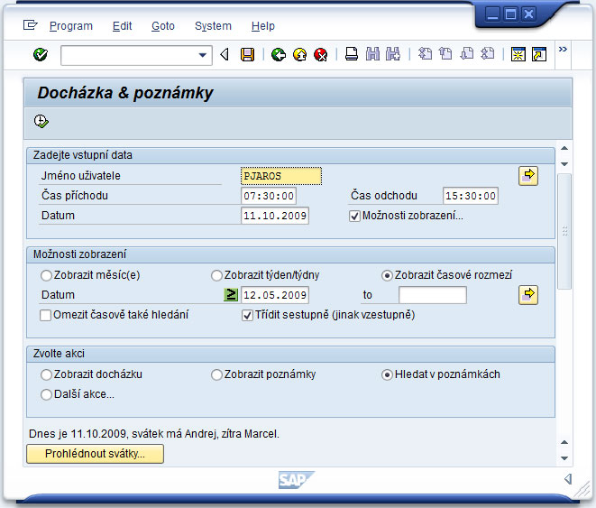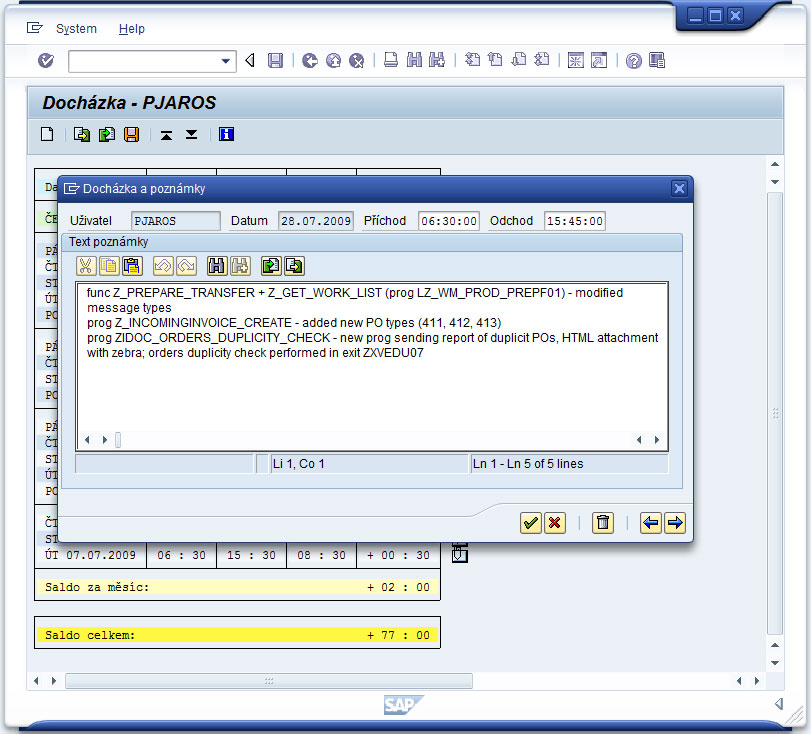 The program is primarily used to record employee attendance. Data is entered into the program via the input selection screen, by loading from an external file (in tab-delimited text format and with the following structure: User Name, Date, Arrival, Departure) or directly in the attendance/notes list. The program calculates the daily, monthly and total balance (overtime) of the employee. Attendance records can be added, edited, deleted, exported (in different formats) and imported (only in the above format). The complete attendance record or only for the selected month can be displayed. In addition to attendance records, the program allows you to attach a note of any length to each day (attendance record).