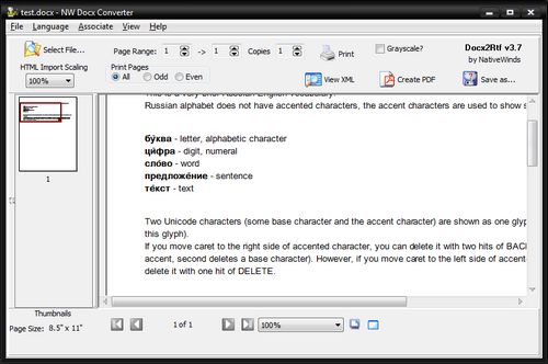 The converter is designed to change the extension of text formats Docx (Microsoft Office) and SWX and ODT (OpenOffice) into universal RTF format. Without owning these aforementioned programs, you can easily batch process entire directories of these formats.