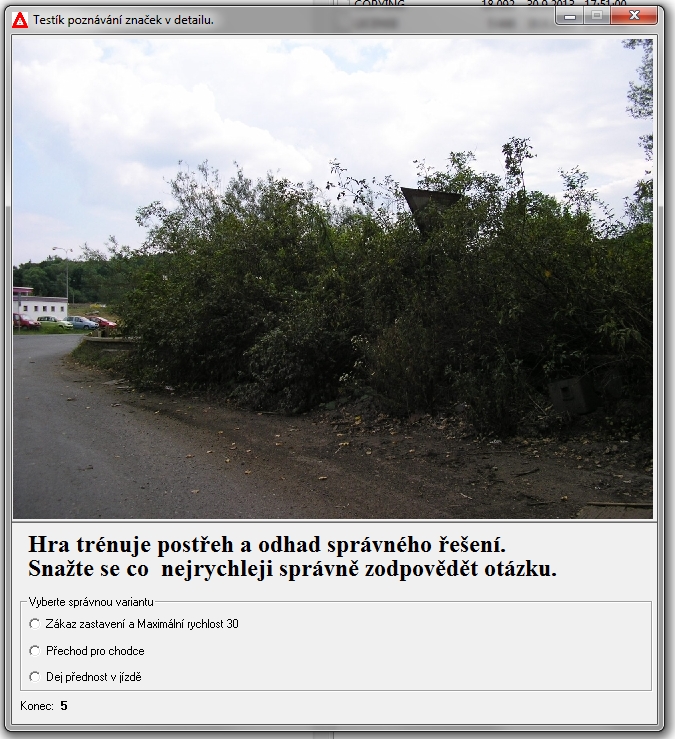 Traffic Test is a program designed to test attention to traffic signs. You have five seconds to correctly identify the variant of the traffic sign. The game trains observation and estimation of the correct solution.