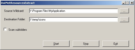 DotNetResourcesExtract is a small tool that scans dll and exe files of .NET applications and then extracts all .NET resources embedded in the applications (rasters, HTML GIF files, etc.) to a folder you define on disk.