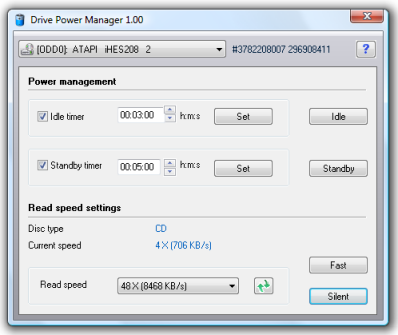 Drive Power Manager is a tool for changing and adjusting the performance of hard drives and CD/DVD/BD drives. It offers detailed settings to save power, reduce noise and increase performance.