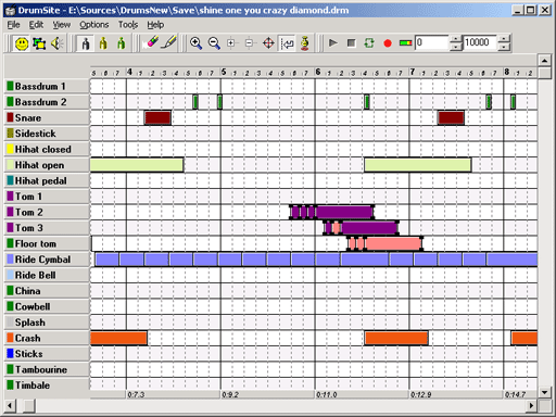 Drumsite is a software for drum programming. If you need to create a drum recording for your song or for accompaniment, this tool is ideal. It uses digital samples and is not dependent on the sound quality of your MIDI sound card. You can create any number of sound files. The recording can be enriched with several effects. It supports import from MIDI, export to WAV (or MIDI) format and mixing with other instruments.