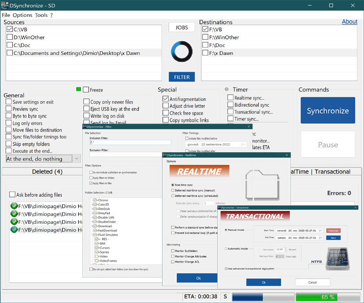 DSynchronize is a standalone utility that allows you to periodically synchronize two or more folders on your hard drive, floppy disk, LAN, USB stick, CD-DVD (with packet writing software) and FTP server.