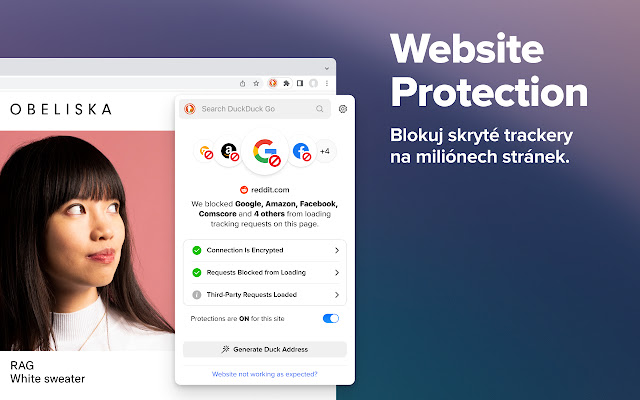 The private browser for mobile devices is equipped with a search engine, tracker blocker, encryption enforcement tool and more. Available on iOS and Android devices: https://duckduckgo.com/app