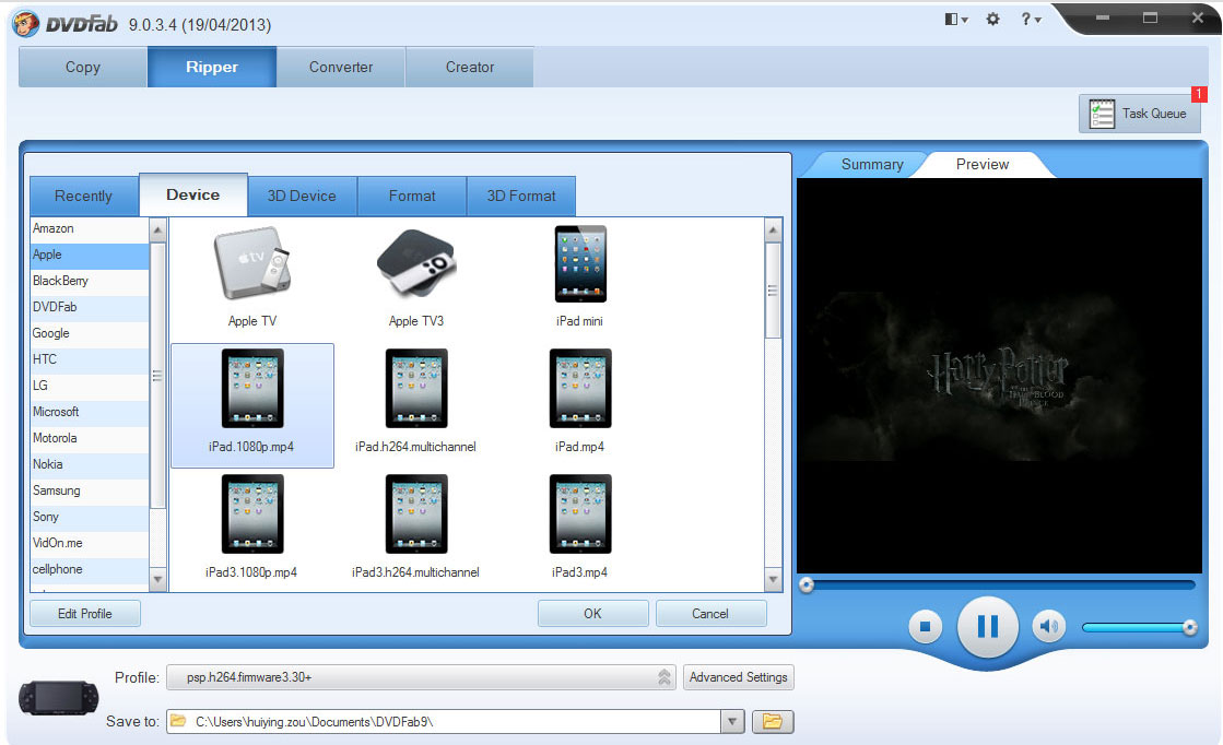 Thanks to DVDFab Blu-ray 3D Ripper you can get rid of all Blu-ray protections and freely convert Blu-ray 3D to 3D video files such as AVI, MP4, WMV, MKV, M2TS and TS for playback on 3D TV, 3D smartphones and other 3D devices.