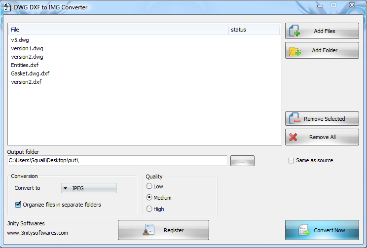 DWG DXF to Images Converter is a batch converter that allows you to convert DWG and DXF files to TIF (TIFF), JPG (JPEG), BMP, GIF, PNG, SVG, CGM, WMF and EMF formats without the need for AutoCAD.