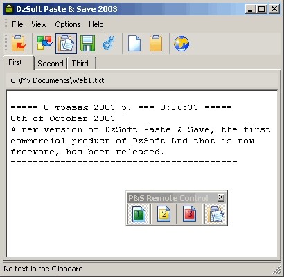 DzSoft Paste & Save is a small utility for saving a portion of text to the clipboard for future use before it is accidentally overwritten. It allows you to save text in three parts. The text can be saved automatically.