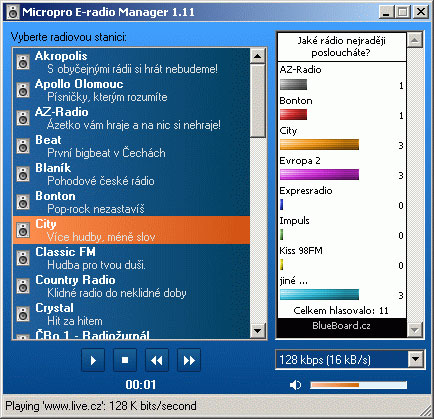 Application with more than 105 most famous Czech and 10 most famous Slovak radio stations and 30 Czech, Slovak and other foreign TV stations. You can listen to radios in 16 - 192 kbps quality (depending on your choice) and TVs in 32 - 2028 kbps quality (depending on your choice) at work. Support for recording radios to MP3 or OGG format with great olby quality and scheduling options. You can minimize the app to the system tray next to the clock so it doesn't interfere with your work. Supports the ability to add your own radios, filter by genre and region, or rate radios with stars.
