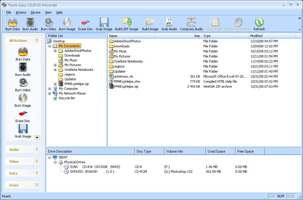 Easy CD/DVD Recorder is a useful utility that allows several functions to work with your CDs and DVDs: burn any CD, DVD, HD-DVD or Blu-ray Media, grab and convert audio, create DVD-video discs, create and burn ISO images!