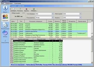 Easy Money is a useful program for organizing your money in a clear way. You enter all your income and expenses into the program, so you have precise control over your finances (what and how much you paid for, your income, etc.). The data can be displayed in graphs and tables and then printed.