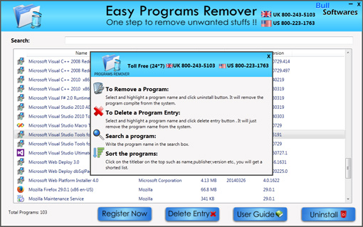Easy Programs Remover will help you easily uninstall software and unwanted programs on your computer. Easy Programs Remover has a feature called forced uninstall. Forced uninstall is the best solution when you have to remove unwanted programs, partially installed programs that are not listed as installed thing at all. Easy Programs Remover offers you a simple, easy to use but effective and powerful method to uninstall software or track a program while it is being installed.