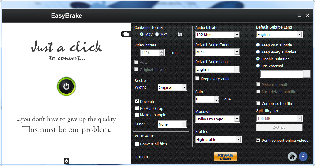 EasyBrake is a tool for easier conversion of multimedia files to other formats.
