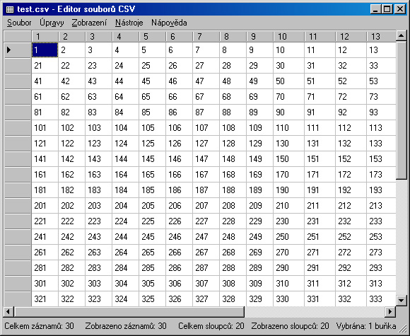CSV File Editor is used to view and edit text files with comma separated values (CSV). It accepts semicolon and tab separated values (TSV) as separators. Individual values can be enclosed in quotation marks. If values are not enclosed in quotes, spaces before and after the separator are accepted as part of the values (in accordance with RFC 4180). This can be changed in the settings if necessary. The detection of the delimiter and enclosing the values in quotes is done automatically. If necessary, the automatic detection can be switched off, both for a specific document only using the commands in the main menu "View" and globally in the program settings. It is also possible to set the file encoding, either for a specific file or for all opened documents. The default encoding is CP 1250 (the common encoding used by the Windows® operating system in Central Europe). The other options are ISO 8859-2 (the encoding used by Unix and Linux operating systems in Central Europe, for example) and UTF-8 (currently already a standard in an effort to cover as many languages as possible).