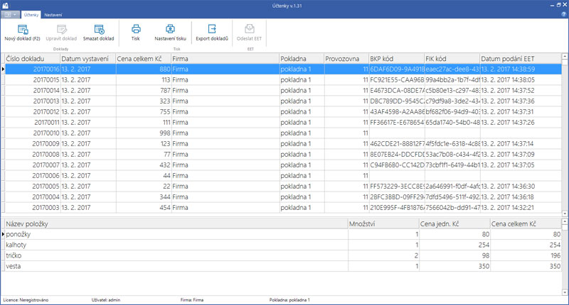 The EET Receipts program is a simple database system that allows you to easily create and record receipts on a PC. Of course, it automatically sends receipts to EET.