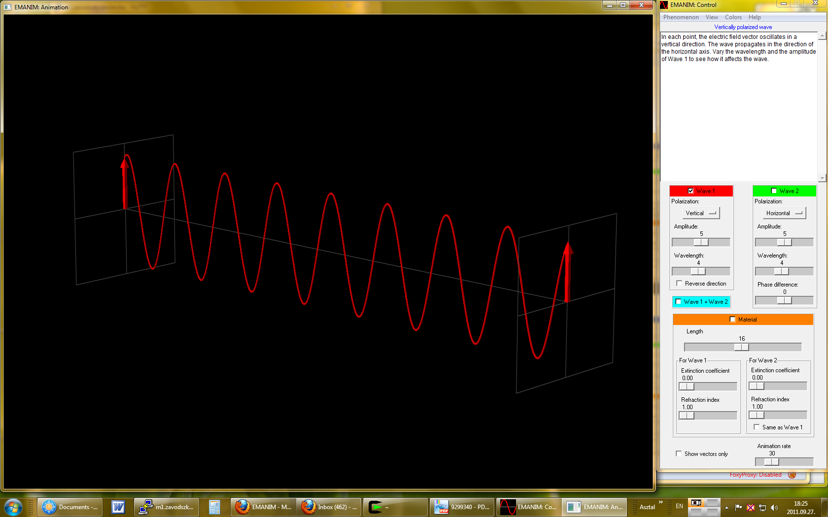 EMANIM can help the user understand a wide range of phenomena related to electromagnetic waves, from the simplest, such as a single wave in a vacuum, to the most complex, such as circular dichroism. Its features that support learning are: