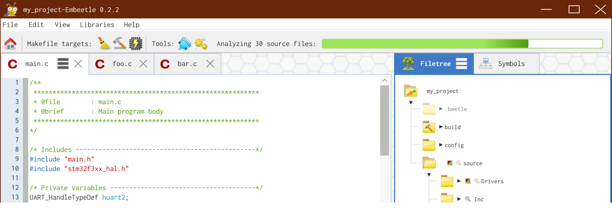 Embeetle IDE is a powerful integrated development environment (IDE) for embedded software development. The IDE is available for free and is compatible with Windows, macOS and Linux.
