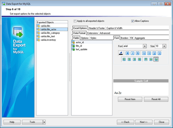 The program includes a wizard that allows you to set up the export in detail for each visible table (destination folder, exported fields, data format and much more) and a command line utility to export data from tables and queries with just one click. The program communicates in six languages, unfortunately English is not represented.
