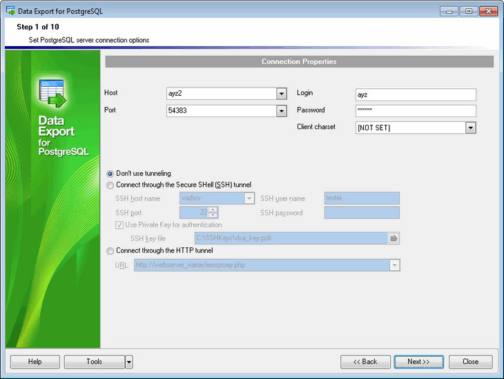 EMS Data Export for PostgreSQL is a powerful multi-platform (Windows and Linux) program for fast export of your data from PostgreSQL database to 15 different formats such as MS Access (Windows version only), MS Excel, MS Word (RTF), HTML, XML, PDF, TXT, CSV, DBF and others.