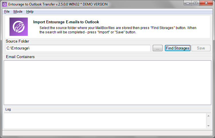 Entourage to Outlook Transfer is a compact, fast and user-friendly tool that helps users convert Entourage emails from Mac to a copy of Microsoft Outlook installed on their computer. The software converts the contents of Entourage folders to Outlook or a separate PST storage file and is capable of recovering data from corrupted mailbox files.