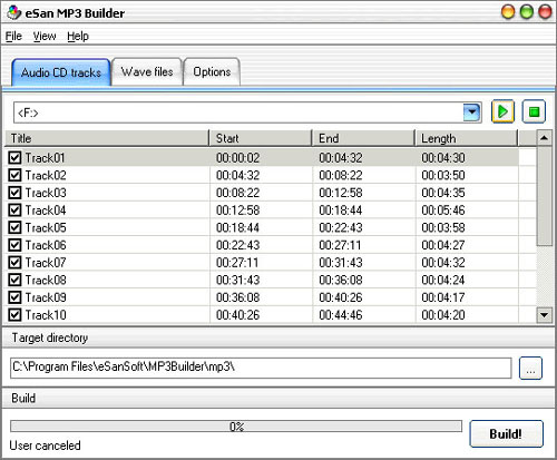 eSan CD Ripper is an application for easy and automatic conversion from music CD to MP3 using the LAME engine. With the program you can also convert music from WAV to MP3 format.