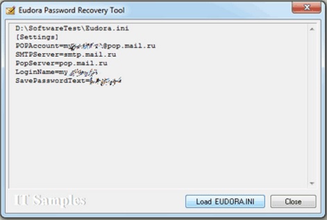 You will appreciate the Eudora Password Recovery Tool if you have forgotten your Qualcomm Eudora Mail login credentials. This tool is designed to decrypt the saved login credentials file that Qualcomm Eudora Mail stores in what would be the "Eudora.ini" configuration file.