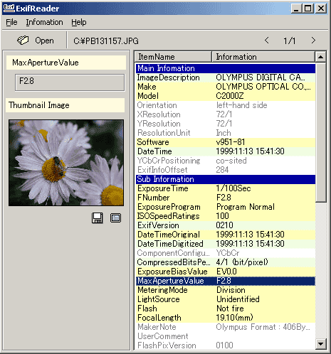 Using this program, we can find out various information and data that is automatically saved when taking digital photos. The Exif Reader will show us the values that were set when taking the photo, such as: aperture, time, flash usage and other basic information.