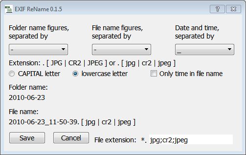 EXIF ReName gives you the ability to rename image files that contain EXIF-Data. EXIF information is created by the camera when the image is taken. For example, the date and time the image was taken.