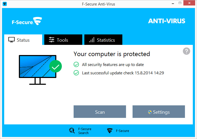 The F-Secure software protects your computer from various types of viruses, worms, intrusion attempts and other threats. F-Secure Antivirus is a quality antivirus program with all the features expected of a modern antivirus: