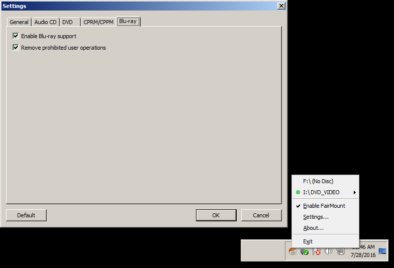 FairMount is a tool for accessing content stored on optical media such as DVD, CD, Blu-ray. It is a tool for decrypting stored data. It works in the background, removing CD Digital Audio (CDDA) protection from audio optical discs, getting rid of copy protection (DVD, CPRM, CPPM, Blu-ray, BDAV) or deleting User Operation Prohibitions (UOP) from DVD and Blu-ray discs.
