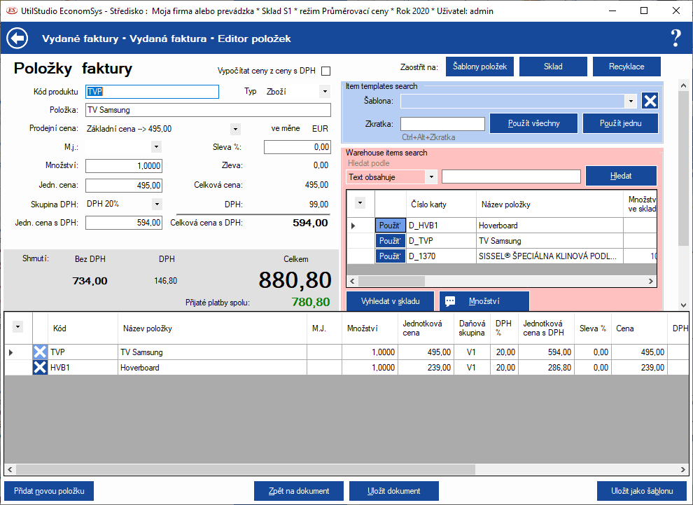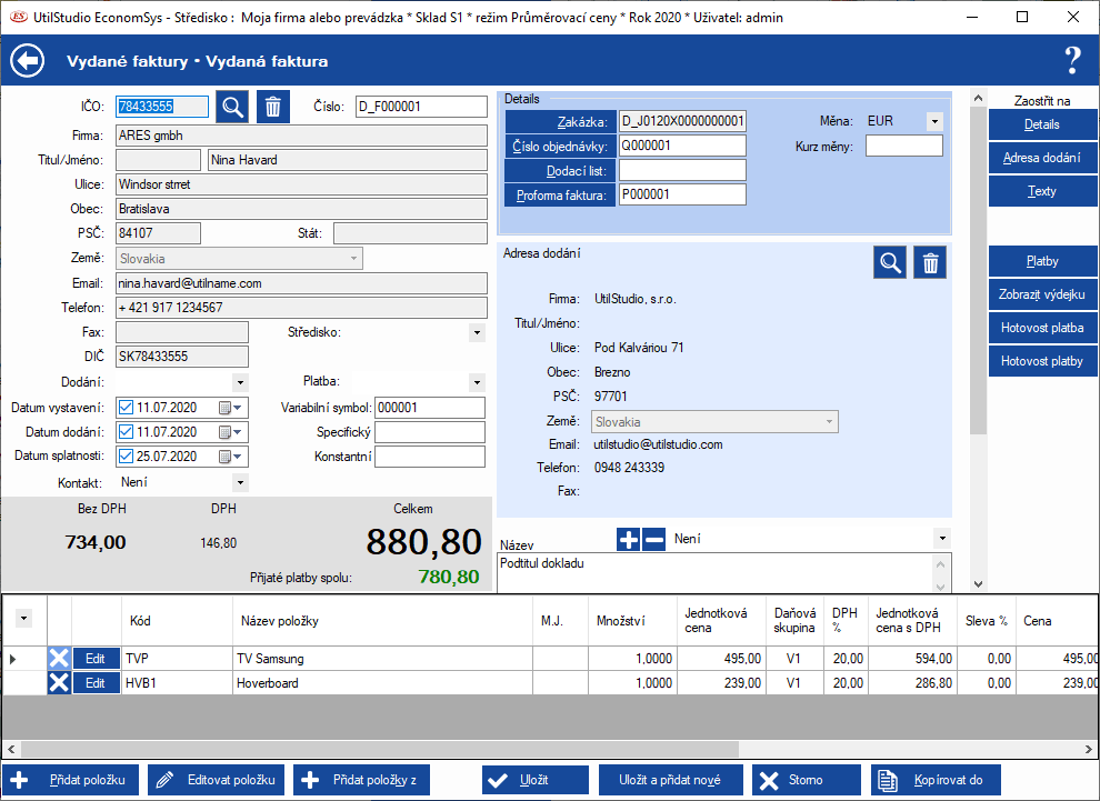 EconomSys is a simple and reliable invoicing software for the Windows operating system. It allows you to issue, search and print invoices, purchase orders, advance invoices, delivery notes, warehouse receipts and dispatches, record non-cash and cash payments through to exporting to accounting systems. Issued invoices, as well as other documents, can be emailed directly from the program. Invoicing also enables automatic issuing of recurring invoices for various services, rent, parking fees, etc.