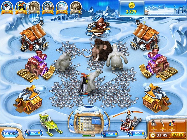 Relax with the brand new Farm Frenzy adventure! Join Scarlett as she travels to the North Pole to see the farm she bought from a newspaper ad. When she arrives, not only does she find the farm devastated, but she also meets two brothers who need her help making ice cream. In 90 new levels of frozen fun, you'll create frozen treats, raise penguins and other polar animals, and make new products while enjoying a parade of visual gags!