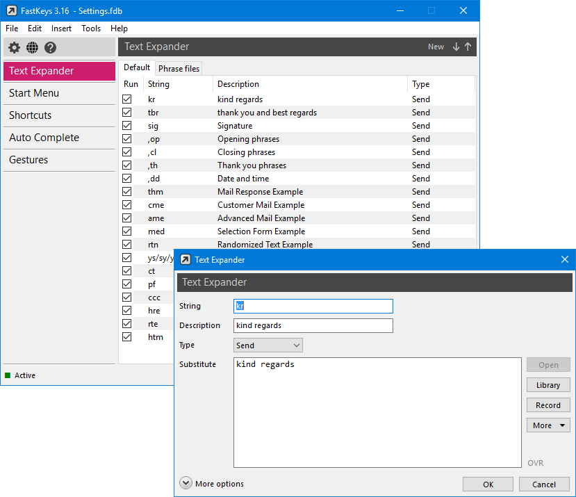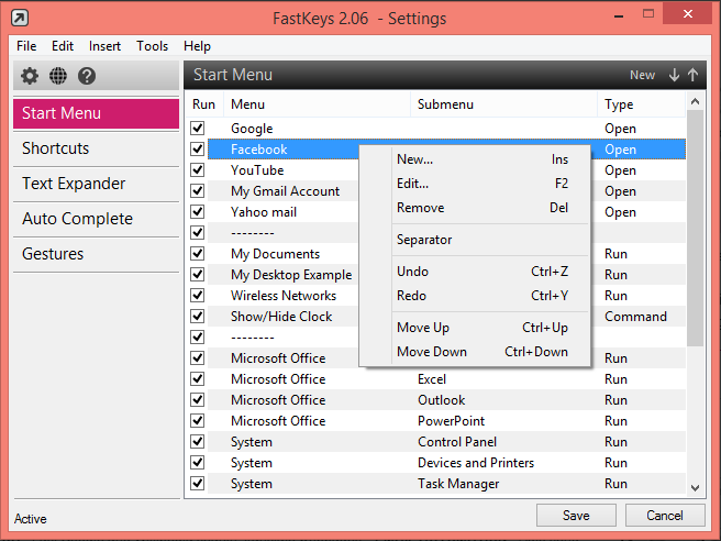 FastKeys is software for automating start menu, gestures and user commands. With this tool you can then launch files, open web pages, send macros, etc. The program is incredibly powerful, yet easy to use.