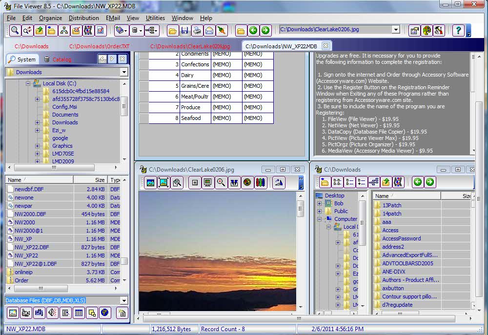 The File Viewer makes it easy to search, view, edit, organize and send files over the Internet. It allows you to find and view different types of files: images, videos, sounds, music, text files, documents, spreadsheets, databases, archives and system files. It supports bulk processing.