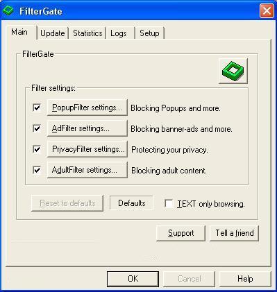 The basic settings of the program can be adapted to the specific requirements of the user, for example, by selecting sites that will never be filtered.