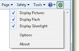 Flash & Pictures Switcher is a plug-in for Internet Explorer that allows you to enable or disable Flash images and Microsoft Silverlight animations. The program provides an easy way to limit incoming traffic, reduce web page load time and improve page readability.