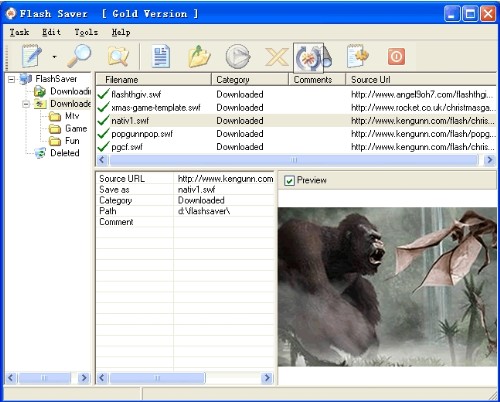 Flash Saver is a powerful tool for downloading swf files from websites. It allows you to save all flash animations from the internet, such as flash games, flash movies, videos and any other flash files found on the web. Just click, all swf files will be downloaded to your local hard drive. You can then sort, rename, play, etc.