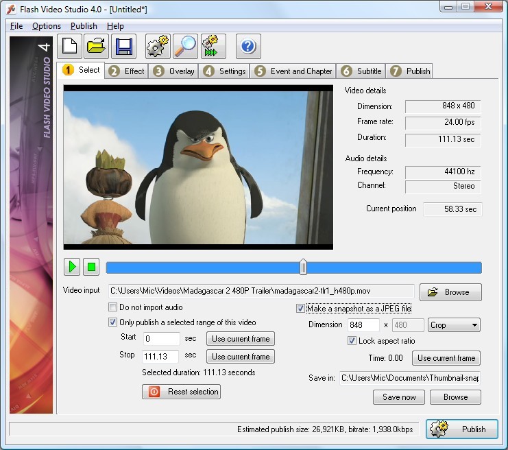 Flash Video Studio is a powerful tool for converting almost all video files to Adobe Flash SWF and FLV format. It produces high quality output and offers many unique and useful features