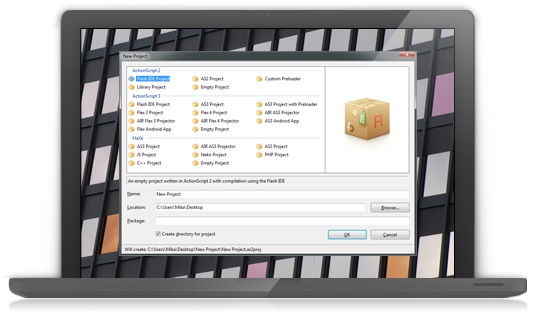 FlashDevelop offers first-class support for ActionScript (2 and 3) and haXe development. Code completion and generation, compilation & debugging projects, lots of project templates, SWF/SWC exploration etc. FlashDevelop is also a great web developer IDE with support for source control (Git words, Mercurial), tasks/todo, snippets, XML/HTML completion and zen-coding for HTML.
