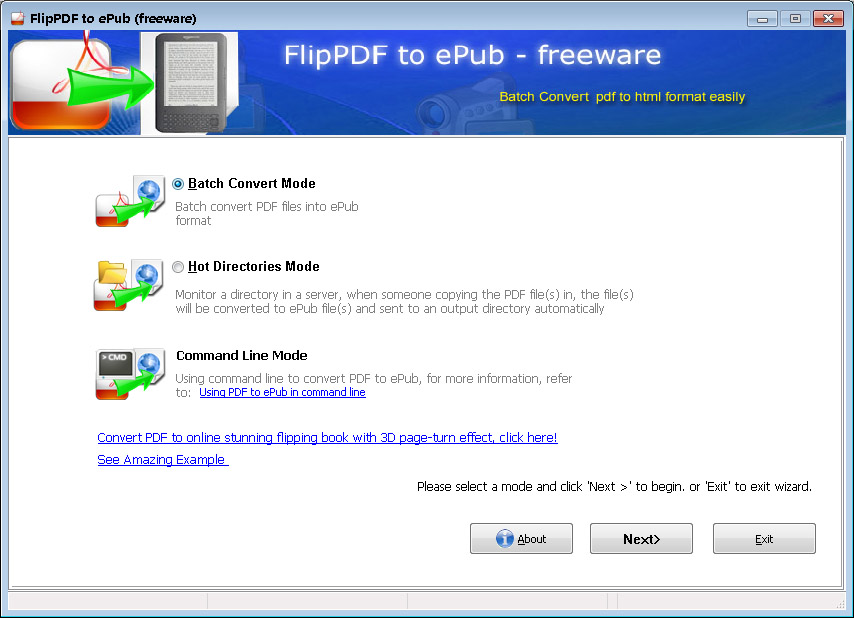 Flip PDF to ePUB is a utility that quickly converts PDF documents to EPUB ebook format. So you can easily read ebooks on your iPad, iPhone, iPod Touch, Sony reader or other ebook readers.