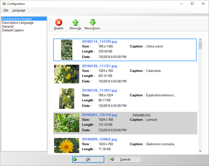 Relax and enjoy the screensaver with beautiful pictures of plants and flowers. For educational purposes, a description with the scientific and English name of the plant can also be displayed. Beautiful customizable fading effects and other transitions make the display more enjoyable.