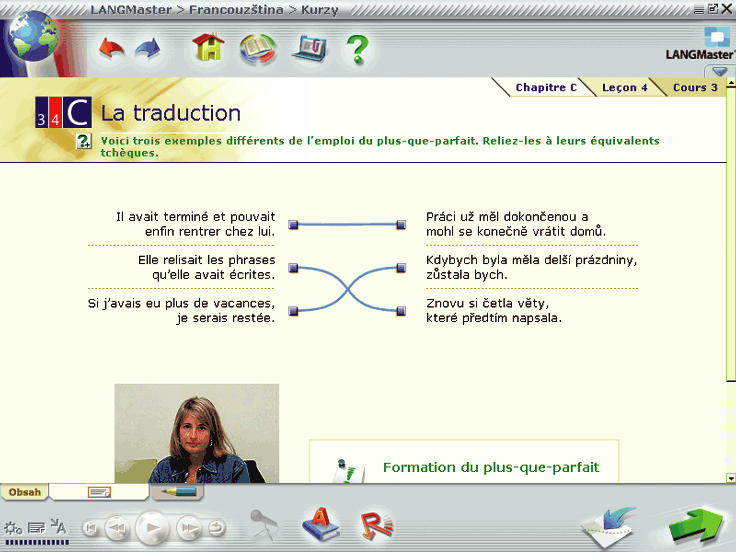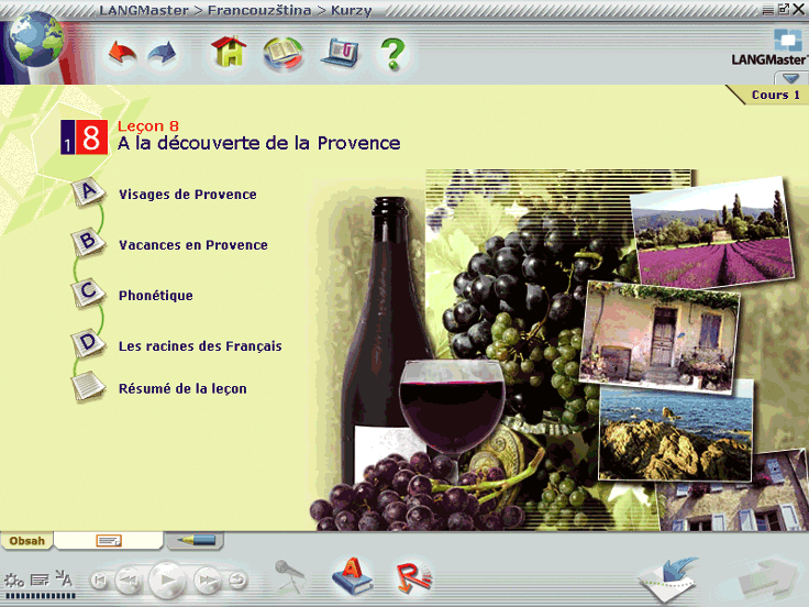 The course uses IBM ViaVoice speech recognition technology, making it possible to control not only the app but also many of the exercises with voice commands in French.