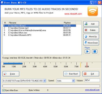 Want to burn your favorite MP3 or WMA music files? With Free Burn MP3-CD it's no problem. It allows you to convert MP3, WMA, WAV & OGG formats to audio CDs.