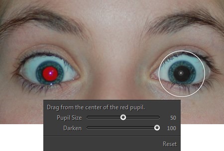 Free Red-eye Reduction Tool is a program to easily reduce red-eye in your digital photos. The program automatically selects the eye in the photo and it's up to you to reduce the red-eye using two sliders.