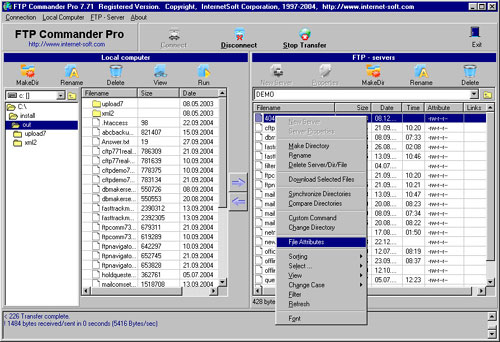 FTP Commander is a user-friendly tool for working on an ftp server. It offers a user interface in a classic two-panel layout. You establish a connection to an FTP server with a simple mouse click, and many servers are already predefined so you can easily "surf" the world's major FTP sites. The client offers two-way file swapping and multiple downloads, which can be very useful when you are actively working (e.g. managing web sites, etc.). Another advantage of the program is the "keep connection" function, which prevents the FTP server from disconnecting you after a certain interval of inactivity. Another interesting feature is directory synchronization, command line for more complex operations and much more.