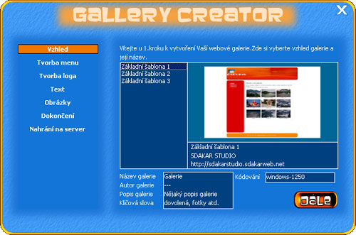 Gallery Creator can create your web gallery in just a few steps. Just enter a few details and your gallery is ready. It also has its own FTP client to make your work as easy as possible. Of course, you can choose the look of the gallery, create a menu, give the gallery a title + some text and many other options!