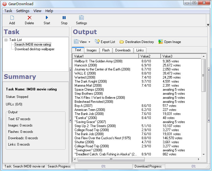 GearDownload is a free, handy tool for searching formatted text, images, flash, downloads and links on a single page or several related pages.