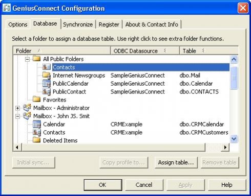 Genius Connect enables synchronization of Outlook (Contacts, Tasks, Mail, etc..) stored on local stations (.pst file) or in MS Exchange with any ODBC-enabled database (MS Access, MySQL, SQL Server...). Data (name, address, email ...) can be easily synchronized. The program supports multiple folders, data protection of personal contacts. Supports Microsoft® Outlook® 2000/XP/2003. GeniusConnect options: