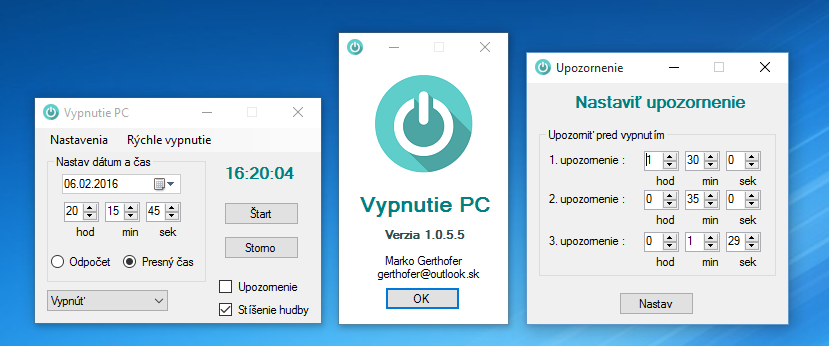 - alerting the user when shutdown is imminent (automatically before shutdown 5min / 1min / 30 seconds or by setting a custom time)