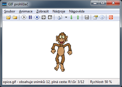 A simple tool for viewing GIF files, especially animated ones. For animated GIFs, in addition to the default animation playback, you can also view a list of individual frames in the animation. Selected frames can be saved in separate files of the selected format (PNG, jpg, ?..).